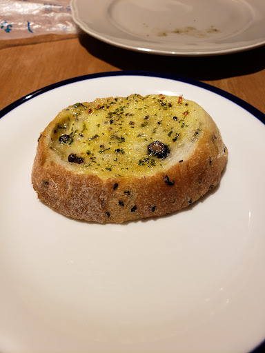 Wife and I enjoyed a date night! Great ambiance, and about medium sized seating capacity. They did not have an English menu or English options, but the staff was great to work with and help if we didnt understand. Great service and very friendly. They gave a bell to ring for them to come and assist each table. We started with garlic bread (pictured), pasta, pizza, bacon salad (I ate half of it before I took the picture), and finished with dessert pizza. Apple Cinnamon with ice cream! They also have a great selection of wines and a decent selection of beers. We were able to walk in, but they do take...