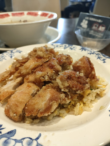 台湾大唐揚げ炒飯:極薄の唐揚げにパリッとしたコロモ。私的にホントはこの食感あまり好きではないが、この薄さだとこれが最適解という気もする。どちらも少々淡味だが、タレをかけると一変し、らしい旨さに。本来これもスパイシーなのかもしれないが、麻辣湯と合わせちゃうとマスキングされてしまったかも。でもなかなか良い...
