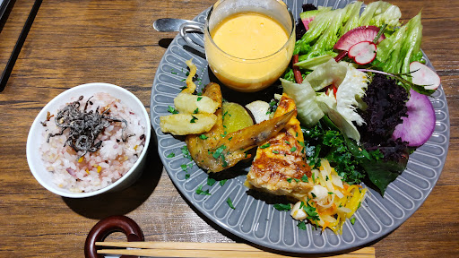 Read moreランチタイムに訪問!南口からすぐのビルの2階ですが一緒に行った友人は土地勘もなく「え?ここ?」と言いました(笑)階段下の道路に面したところのメニュー表とか「こくべじ」とあるのを指差して階段を! 1番のおすすめは「こくべじぷれーと」(こくべじ=国分寺の野菜)との事。カレーもありましたがこくべじぷれーとオーダー!この日はほうじ茶のご飯やカリフラワーやカブのスープなどでした。週替わりのメニュー表が置いてありましたが撮り損ねた… 名のとおり野菜がふんだんに使われているプレートで肉巻きで豚肉が使われているくらい。 野菜の味を生かす優しい味付けでとても美味しく頂きました♪不定休もよくあるようですし、プレートランチは限定数とのことで、予約した...
