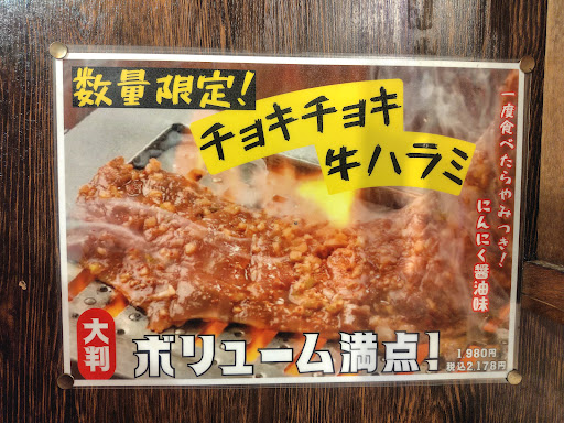 Read more接客が良く、安い、美味い、早い、が感想です。 東北で16店舗を構えるホルモン店が2023年12月に東京初進出。美味しそうなメニューを掲載した大きな看板が目印です。以前も焼肉店があった場所で居抜きです。