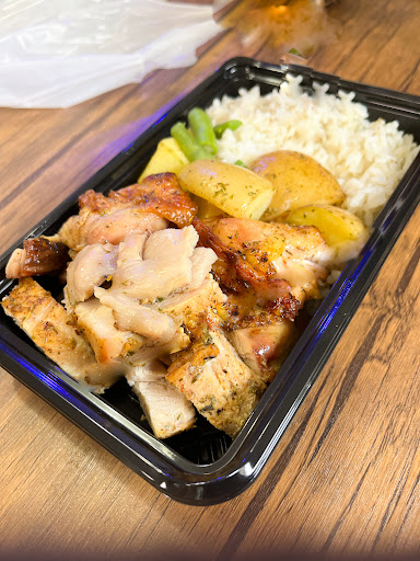 ランチボックスの内容は、ロティサリーチキン、ポテト、インゲン、ハーブライスです。せっかく来たのだから、チキン、ライス共に増量でお願いしました(’-’*)♪