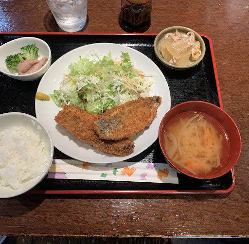 Read moreたまたま開いていたので入店。ランチは三種類あって、今日は『Aピーマンの肉詰め、Bアジフライ、Cしょうが焼き』でした。中に入ると、昔の雰囲気漂う内装でノスタルジックな気持ちになりました。