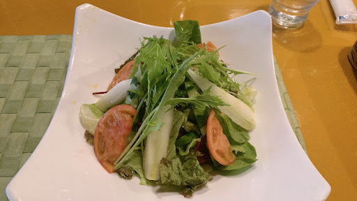 最初に出てきた セットのサラダよく冷えている器にオリジナルのドレッシング 美味しかったですー。