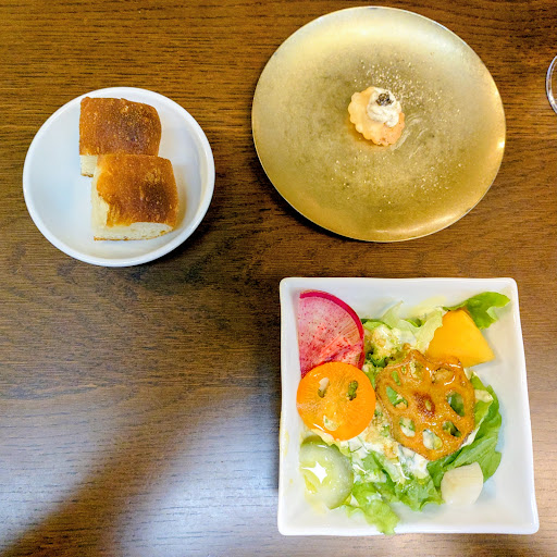 ランチタイムはコースが3種類あり、それぞれ1,400円、2,200円、3,000円。 1,400円のパスタコースをチョイスし、内容は前菜、サラダ、パスタ2種(!)、食後のドリンク。 味、量ともに申し分無く、素材にもこだわっている様子だったので、この内容で1,400円は正直めちゃくちゃお得なのでは…と感じました。