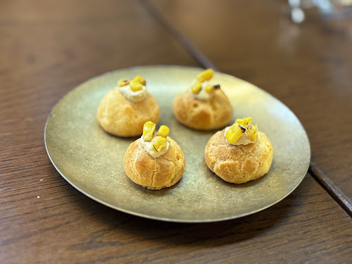 プチシューはウニととうもろこしを使ったクリームチーズのようなクリームが入っていました。