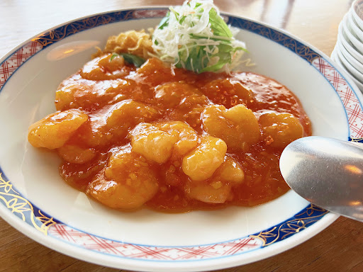 ランチコースは天外天コースの8品。コース以外にもアラカルト注文可能です。コースにドリンクは付いていないので別途かかります。 ◆3種冷菜盛り合わせ クラゲ、ナッツ、棒棒鶏 特にナッツが美味しかった。ジャスミンの香りが広がる砂糖をまとったナッツはやさしい甘さです。 ◆ふかひれ入りスープ ふかひれスープというよりエノキスープだったかな。コリコリした食感はよかったです。 ◆エビのチリソース炒め プリプリのエビとほどよくピリッと辛い味付けはとても美味しかった。 ◆もち米焼売 粘り気のあるもち米がまぶされた焼売はなんだか懐かしい味がしました。給食、、?こんな感じのお料理出たよなーと笑 ◆金目鯛の油淋ソースがけ 揚げられた金目鯛の切り身が2切れ。とても大きく満足感があります。揚げられているけど金目鯛はふわふわ。揚げナスもソースを吸っていて美味しい! ◆鶏肉とじゃがいもの黒酢炒め 大人数だったので大皿での提供でしたが、とんでもなく量が多くびっくりしました。鶏肉とじゃがいもだけでなく、サイコロ状になった厚揚げも入っていて食べ応え十分。酢が効いているので意外とサッパリ頂けます。 ◆細切り豚肉のあんかけ焼きそば とろとろのあんかけと麺が絡まりお腹いっぱいなのにスルスル入ってしまいます。ボリュームがあり、コースの最後でかなりお腹いっぱいに。 ◆杏仁豆腐 デザートはお決まりの杏仁豆腐。柔らかい食感ではなく、硬めでプリンとゼリーの間のような感じ!この硬さ、めちゃくちゃ好きです。コースの最後に最高のデザートでした。