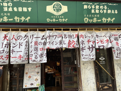 この日は夕飯を食べないまま、終電で飯田橋駅に降り立ったのですが、何か良さそうなお店はないかと神楽坂を歩いたところ、こちら「ロッキーカナイ」が営業中ではありませんか。