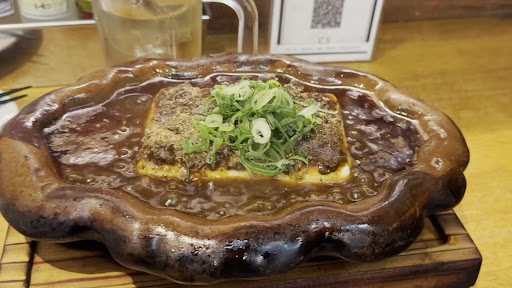 「黒麻婆豆腐 879円」は、グッツグツに煮え立った状態で提供されました。ごま油が香る麻婆豆腐でした。