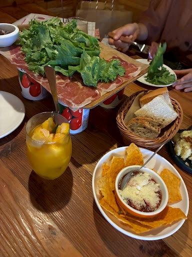 テーブルの上にトマト缶がおいてあって不思議に思っていたら、同店名物の生ハムとサラミのてんこ盛りを乗せるためのもの。。。 これ、かなりお得で見栄えもいいです。