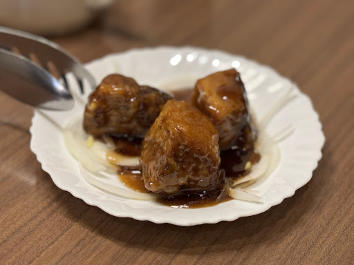 黒酢の酢豚は、おそらく豚バラ肉を使用しており、外はカリッと香ばしく揚げられているのに中は柔らかく、とろけるような食感。濃厚でコクのある黒酢ソースが肉の旨味をしっかり引き立て、甘さと酸味のバランスも絶妙です。衣の厚みも適度で、最後まで重たく感じずに楽しめました。酢豚ひとつとっても、部位選びや火入れ、ソースの仕上げにまで手を抜いていないことが伝わってきます。