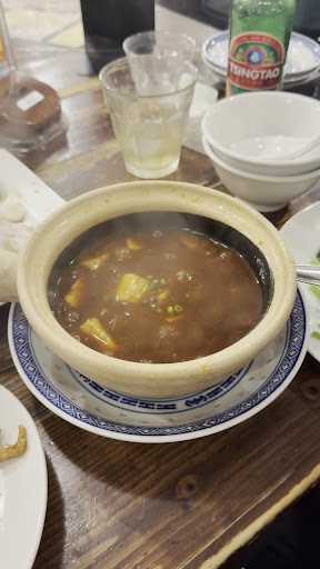 旨旨。 餡掛けスープになっています。 酸っぱさもちょうど良い^ ^ 細かく刻まれた具材もスープと一体になっていて うまく調和されていますね。 具は、タケノコと鳥ミンチかな? 美味しいですね。