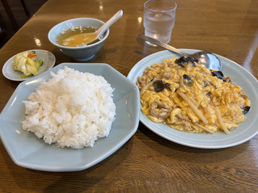 特にランチセットなどはなく、単品注文。 4種類あるおすすめメニューの卵ときくらげの炒め物(750円)とライス(250円)を注文。 スープと漬物がついてきました。 味はさっぱりしており、胃もたれしない優しい感じ。 漬物など含め、全て丁寧に作られたお味で好印象。 何よりライスが中華には珍しくしっとりとしていて、個人的にはとても美味しかったです。 中華であまりライス自体を美味しいと思ったことがないので、感動しました。 しかし、お冷は少しカルキ臭かったかも。 高齢者の方が多いのも納得です。 逆にガッツリ中華を食べたい層は気をつけてください。 量はそれなりにあるので、味付け以外は、若者でも全然問題ないかと思います。