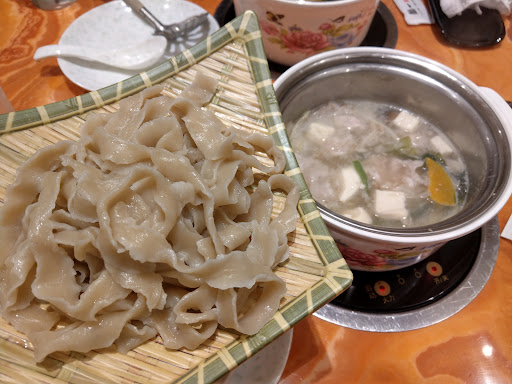 Read more2018年にオープンした、中国風火鍋のお店。1人ずつ各席にIHコンロがあり、中国風に1人鍋を食べます。サービスセット豚肉白湯スープを注文してみたところ、野菜とスープは最初からすべて鍋にセットしてあり、コンロで加熱するだけと手軽。沸騰したら弱めて、肉を加えて食べるという手順でした。スープはあっさりとした出汁で控えめの塩分があり、ポン酢などつけなくてもそのままで美味しいです。具はかぼちゃ、白菜、えのきなどは日本の鍋と似ていますが、山芋を細長く切ったものが入っていてシャキシャキしています。しかも最後の麺に、刀削麺を選択できるのが素晴らしい。豊かな小麦粉の味がします。中国の鍋というイメージをよそに、さっぱりとしてします。