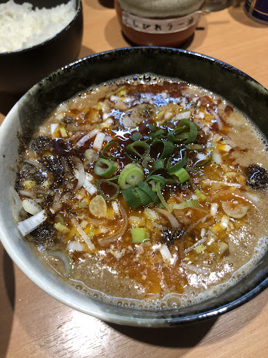 Read more昨日GoogleのTOPに表示されてたので、久しぶりに休日の昼時に(混んでるだろうなって思って)来てみました。 お店は、東京メトロ千代田線の町屋駅0番出口を出ると目の前は交差点で、右側には都電荒川線(東京さくらトマム線)の町屋駅前駅があり、0番出口から交差点方面に都電沿いに歩いたので一番近そうでした。 たまたまですが、お店に到着時には待ち行列が無い状態でした。(心の声ではラッキー) お店の入口の両側には自転車があり、近くの人で賑わってるお店の雰囲気です。 お店に入り直ぐ右側に食券機があり、担々つけそば(白)¥860、ライス小¥30、チャーシュー3枚¥300の食券を購入したら店員がカウンターの空いてる場所を指さしてたので食券を渡して指定された場所に着座です。 紙エプロンは食券機の上との貼り紙を見て再度食券機に後戻りです。お水は自分で給仕です。 しばらくすると、店員が何も言わずに麺とライス(小)を置いた。また、ちょっと待つとまた、黙ってスープを置く店員。(このフロア担当の店員はサービス精神が何も感じられない) 厨房はご夫婦と思われるがご主人は来店客に挨拶されたり奥様?に声掛けはされてるが奥様?は最低限の受け答えだけでこちらもサービス精神は一切なしでした。 スープはドロっとした魚介系のスープの中にチャーシューのこ切れが結構入っていて、坦々麺のそぼろ?がゴロゴロ入ってる。麺を増量するのを忘れたが中太ストレート麺で少しずつスープに入れてたっぷりつけ汁にしたしてから頂く。美味しい。 しばらくして、ブレンド山椒と、しびれラー油を少しだけ(適量)入れると味変が楽しめる。 チャーシューは柔らかくてつけ汁に潜らせてから食べると更に美味しかった。 麺が殆ど無くなってからはレンゲとお箸で底からそぼろと小さいチャーシューを救って食べる。 最後はライス(小)の上に残ったつけ汁をかけて食べる。最後の最後は、カウンターの上に常設の割スープをつけ汁に入れて残りのつけ汁を飲む。美味しかった。 食べ終わって外に出てみると4名も待ち行列があっ...