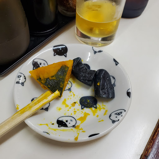 「セルフサービス」と言うことですので空きのビール瓶を「これも上にあげた方がいいですか?」と確認したところ、おとうさんが「はい」とか言ったので上げましたらおかあさんに無言で下に戻されました。…料理皿だけセルフで返して飲物は席に置いたままにしました。王冠を入れる場所とか空き瓶とか店のルールがあるみたいですが初見だとちょっと分からなかったです。