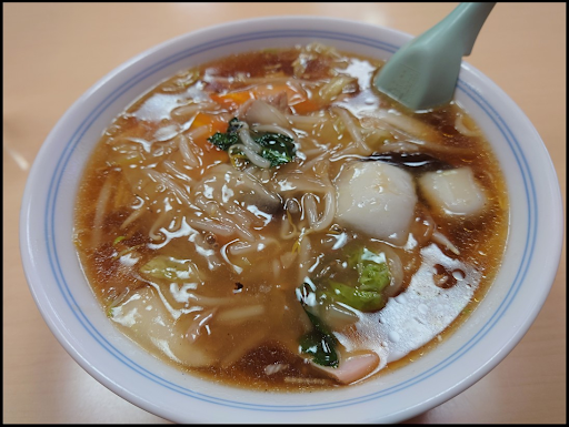 ちゃんぽんと言っても、長崎のそれとはまったく違い、細打ちストレート麺の醤油ラーメンの上に、八宝菜の具が乗っている、あんかけ五目ラーメンですね。全国至る所に色々なちゃんぽんがあるので、それ自体はまったく問題ないのですが、自分には一味足りないと感じました。八宝菜の中に魚介を入れて欲しかったですね。
