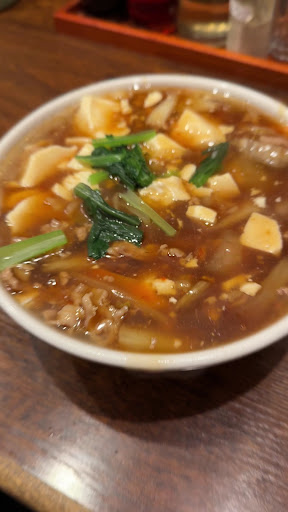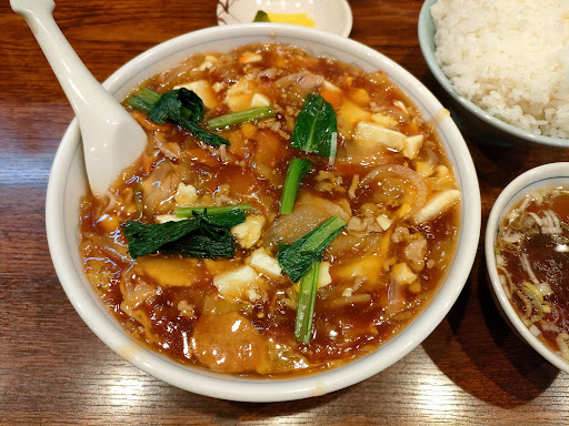 (3回目の来店) 週末寒くなったので温かいものを食べたくなったのと、肉豆腐ライス大盛りが恋しくなって来店。 途中から汗が出るほどに体の中からぽかぽかに。 量もさることながら、やはり肉豆腐ライス大盛りは2回目にして中毒性があることを認識させられた。大変美味しくいただきました。 (初来店) 住宅街に突如現れる地元密着の町中華、栄華さん。土曜の12時に来店し、カウンタ席に着席。 焼肉ライス、チャーハンが口コミで人気のメニューとあり、着席後周りのお客さ様は3名チャーハンでしたので、一瞬チャーハンに傾きましたが、当初の肉豆腐ライスのごはん大盛り980円を注文。 いきなりの大盛りライスの着碗に多っ! しばらくして肉豆腐が着皿、深皿から溢れそう! 肉豆腐は餡がちょっとピリッとしていい感じ。ただレンゲが小さいので時間はかかるけど、アツアツ餡をすくって食べるのにはちょうどいいかな。 お腹いっぱい、美味しくいただきました。 (2回目の来店) 日曜日の12時半過ぎに来店。ゴールデンウィークか天候の悪さか、テーブル席が空いていたので着席。 確か前回肉豆腐を食べたけど、ライスか麺かどっちを頂いたのか思い出せず、肉豆腐ライスを注文。連れはあのチャーハン、ぎょうざを注文。 改めてメニューをみて、肉豆腐の麺?!はないやん。 前回お邪魔したときと同じメニューだったことを少し後悔。 あっという間にに肉豆腐、チャーハン、ぎょうざがテーブルに所狭しと置かれる。 肉豆腐ライスの餡、少しピリ辛で食が進む、進む。 念願のチャーハンを実食。パラパラかつ紅生姜のアクセントが楽しめ、チャーシューの旨味がときより口の中に香る逸品だが…。 正直、肉豆腐ライスとチャーハンは一緒に食べると、肉豆腐が味が強すぎてチャーハンの繊細な味がわからなくなり、勿体ない。白ごはんがベストマッチ。 ぎょうざ…理由はさておき、 おまけでひとつ、ごちそうさまです。 大変...
