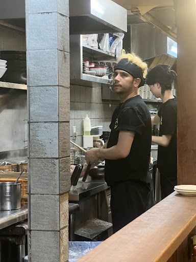 You pay by machine at the front. They ask you how you would like the noodles, either hard or soft. There is also some spicy bean sprouts, raw garlic, and other small sides at each...
