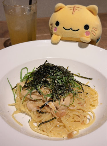 · lunch special pasta with the most delicious tiramisu thats only 550 Yen as of March 2025