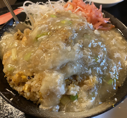 Read more5/31初訪問 新青梅街道沿いの老舗中国料理店。駐車場は少し先に2台程度あるようです。 ランチのボリュームが凄いとのことで来ました。 ランチはいつも同じメニューのようです。 先客は1人。細長い客席には手前にテーブル席が4つ、奥に小上がりの丸いテーブルが二つとまぁまぁの席数。 店主1人のワンオペ。奥様もいらっしゃるようですが、この日はワンオペでした。 私は上海焼きそばを選択。 やや時間がかかりましたが、程なく到着。 確かにかなりのボリューム。他所の倍以上あるかも。 野菜も沢山。スープが付きます。 ですが、味がちょっと(笑) 肉に臭みがあり、食材の鮮度に問題がありそうです。 また調理もあまり上手くなく、野菜がアブラでベチャついております。 またこしょうが異常に多く、こしょう辛くてとても食べられたものではありませんでした。 料理の基礎が出来ていない感じですね。 ただし、その後は3組程来客があり、現場関係のお客様には結構人気があるようです。 ボリュームがすごいので、若い人にはアブラっぽいのは気にならないかもですね。 しかし、テーブルはネチョネチョで、気持ち悪いです。表面を削ってリフォームしてもらいたいし、店内も清潔感がありません。 暇な時間にもっとメンテナンスして欲しいです。 う...