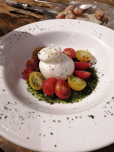 ◆ブッラータチーズのカプレーゼ まず見た目もキレイ!! ブッラータは美味しいよねー、このとろっとクリーミーな感じと味わいがただのチーズでは出せません♪