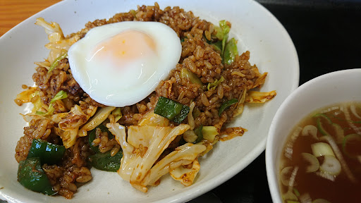 ホイコーローチャーハン、美味しいですが御覧の通りで味は濃い目。ちょっとアラフィフおじさんには重いなぁ…などと食べながら常連さんを観察してみると『餃子定食』を頼まれている方が多い。餃子定食は餃子10個と御飯とスープと言う編成。また定食には一品小鉢が付く様だが、皆さん一様に目玉焼きをトッピングされていた。ホイコーローチャーハンの目玉焼きは形を使って肉厚に焼いているが、一品小鉢の目玉焼きは形を使わずに焼いた『御家庭の目玉焼き』と言う感じ。