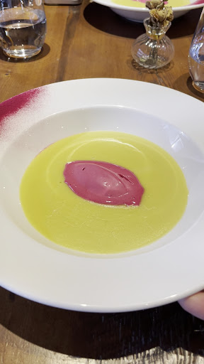 糖度と粘度の高いクリーミーな絶品スープはビーツと生クリームのシャンティで更に濃密な味わいでめちゃ旨。