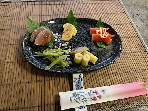 古民家を改装した店で入りずらそうな感じですがまぁ大丈夫です 八丈島近海の魚や自家菜園で育てられた新鮮な野菜を使用しているようです。 案内では女将が気さくでとあったのですが 大将が1人で切り盛りしていました。 なので料理は気長に待てないと厳しい