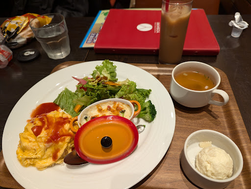 Read more子供と病院終わりに寄りました。子供はお腹空いてご立腹だったので水分補給させながら、パルコ内からベビーカーで入りました。男性スタッフが混んでいて4組いるとのことでとりあえず待つことにしました。後から他のお客さん組が入り先に案内されていて、慌てて店内に入ると外の方側に数組椅子に並んで待機してました。イベントが味スタであったのもあり店内は騒がしく混雑してましたが椅子の待機列近くにある席はガラガラで後から知ったら予約制でした。店内に入る前にお会計終わった席の後片付けが長時間置いてあったり、混雑してるわりにはスタッフさんも少なかったり、長居しているグループもちらほらといました。30分位して呼ばれて子供は寝てしまい、席に案内されると長居してそうかグループが2組隣と後ろにおり、騒がしくて子供は不機嫌になりながらも寝てました。後ろのグループは長居していてスタッフさんから追加オーダーをしており、私が帰るまでずっと居ました。子供が寝てしまったので自分の分だけ頼みデザートにもソフトクリームのミニサイズを選びました。席にあるベルを何度か鳴らしましたがなかなか来てもらえずベルを入口側に置いて鳴らしてるとやっと来てくれました。この段階でイラッとモードにスイッチ入ってました。子供をなだめながらもなかなか食事が来ない…30分位かな?やっと来てドリンクは先に届きましたが帰宅してから口コミ見て噂通りのお店で納得しました。オムライスは小さめでケチャップがかかってるだけの中身は普通の白米です。(個人的にはケチャップライスかと思ってたので残念…)デザート頼むのにベルを再び鳴らしても無反応で気付いてるのか分からずスタッフさんが水を提供していたので呼び止めてデザートお願いしました。来るまでに20分はかかりましたが待った甲斐もあり冷たくて美味しくて普段のソフトクリームよりは北海道という名前が付いてるだけあって私的には濃厚に感じました。食べ終わっても店内はずっと騒がしく帰る客は少なく入る客の方が多く感じました。パルコ側に提供出来ない案内板のようなモノが椅子に置かれてましたが、それよりも『案内するまでお待ち下さい』の様な客がしどろもどろになる人達が自分も含め多かったので、反対側で待機するのであれば『店内奥に椅子があるのでそちらでお待ち下さい』があっ...