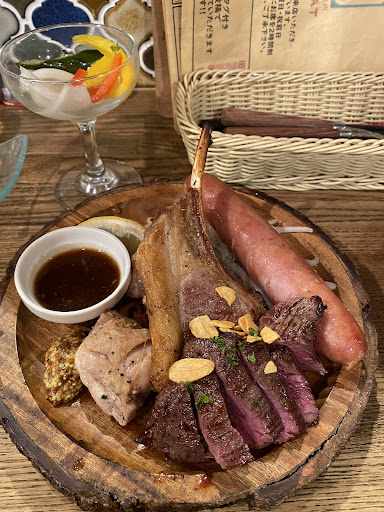◆肉の盛り合わせ ー 牛ハラミステーキ、ラムチョップ、若鶏グリルにソーセージ。とにかくボリュームがすごい!ぜひ写真を見ていただきたく(笑) すべてのお肉が柔らかジューシー!ソースも絶品です^^