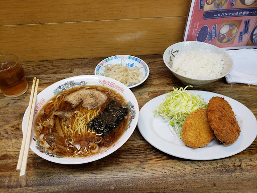 注文したのはメンコロセット750円。 ラーメンとメンチカツ・コロッケが各1個とライスと小皿のついたお得なセットです。 ラーメンは麺は細麺。具は海苔1枚、メンマ、チャーシュー1枚で、量も1人前あります。 薬味は玉ねぎではなく、長ネギなのですが、八王子ラーメンのような味のラーメンです。 スープのみ飲むと、節系の味が濃くなりました。 コロッケとメンチカツは、出来合いのものではなく、注文が入ってからお店で揚げてます。目だった美味しさはありませんが、サクサクの衣の食感があります。 ライスも丼飯です。 安くてボリュームのあるセットでした。