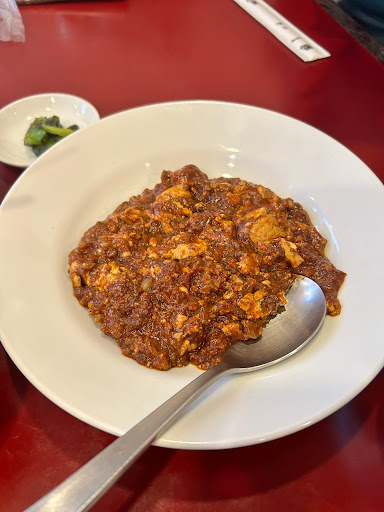 麻婆豆腐はおひつでご飯が来るが、普通の定食屋の大盛りくらいなので大食いすぎる人は更に大盛りで頼む必要があるかもしれない。 小麦粉が少し多めなのか肉の質が悪いのかコクがなく、ラー油を足してみてもやはり満足がいかない…。セットのスープが美味しかったので麻婆麺の方が良い気がするし、頼んでいる人も多かった。 ネギなども少なく、少なくとも私には物足りない。もう少し粗くひき肉を炒めて存在感を出し、筍や椎茸・ネギなどを出した方が良い気がする。