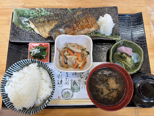 口コミを読んで気になっていた鯖の塩焼き和膳を注文。お料理が出来上がるまで10〜15分程だったかと思います。鯖の塩焼きの他に小鉢、小皿、お新香、お味噌汁がついてきます。食後にはプチデザートも。ご飯は大盛り無料でしたので、大盛りで注文しました。かなり小ぶりのお茶碗ですので、大盛りで正解です。普通盛りは少食の方向けに見えました。