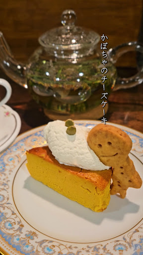 注文したもの・おすすめ順 「かぼちゃのチーズケーキ」(680円) 「ハーブティー空」(750円)