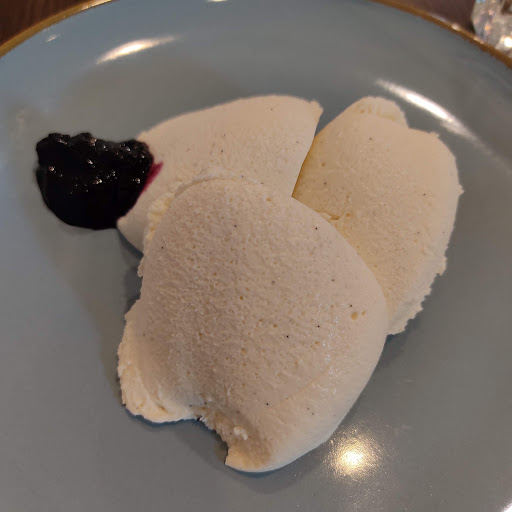 すぐにまずレアチーズケーキが美しいお皿で提供されました。予想と全く違うビジュアルでしたがボリュームたっぷりです。味も濃いレアチーズでブルーベリーソースと合せて美味しいです。ほどなく提供されたコーヒーも美味しく、ゆったりとしたコーヒ...
