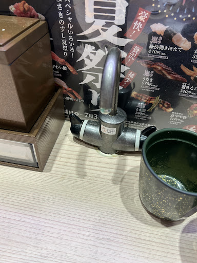 Read more案内され席に座ると、醤油が飛び散っているのにびっくり。自分で綺麗に拭き取り、まぁいっか。と、お茶を作ろうとしたところ、お湯を注ぐ部分が錆びていて、写真みたいに白緑になっていた。気持ち悪くて、お茶を飲めず…。隣の注ぎ口も汚れていたり、錆びていたりとで、お湯を注ぐのを辞めました。 レーンもどうやったらこんな汚くなるんだろ?と、回転寿司でこんなレーンの汚いお店は初めてみました。 次に、アサリ汁を頼んだところ、店員さんが持ってきてくれたのだが、店員さんの手が滑り少しこぼしてしまう。「失礼しました」と小さく言うものの、焦る様子も服にかかっていないかとかの確認もなく、悪びる様子もない態度で、どこかに行ってしまう…。その態度にまたもやびっくり! 拭くものを持ってきたけど、声掛けもなく、ササッと拭いて何処かへ行ってしまった…。 汚いし、店員の接客態度微妙だし、なんだこの店(苦笑) お金貰ってでも二度と行きたくはない...