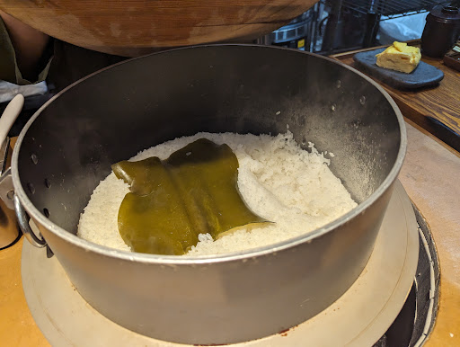 土鍋の炊き立てご飯🍚シャキッと硬めでおかずと合う!しかもおかわり自由なんて、そりゃ人気出ますよね〜