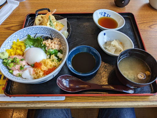 JR成瀬駅から徒歩1~2分の所に有る店舗です。 階段を上がると下足箱が有り、靴を脱いでの入店となります。 何か懐かしい、昔の銭湯の光景が思い浮かびます。 *席はテーブル席と座敷席に分かれています。 ★ランチメニューは平日(月~金)のオープン~17時までと長いのが利用者にはとても便利ですね。 ランチは8種類で699円~1249円(通常1349円)とそう高くはない価格帯です。 *本日はランチに関係無く、『大海老天重膳』(1474円)とセットドリンクバー(241円)を注文しました。大海老天やその他の具材も申し分なく美味しくて満足しました。 店員さんの応対もとても良いようです。 靴を脱ぐというのはちょっと面倒ですが、テーブル席は足元が深くなっていて、足先は自由になるので、ゆったりと寛げるようになっています。床は畳になっており、暖房が効いていて快適です。 *通路の床がツルツルしているので、滑りやすいのがちょっと難点です。 その他は及第点だと思います。 *価格は税抜きです。 *《営業時...