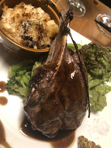 一番感動したメニューはこれ! ・ラムチョップ 1本から注文できます! 想像していたよりもデカくてインパクト大! 付け合わせのブロッコリーもデカい! お肉の照りの具合も見た目から美味しそう。 岩塩と粒マスタードも付けて食べることもできました! ラム独特の臭みも無く、柔らかくてすごく美味しかったです!!
