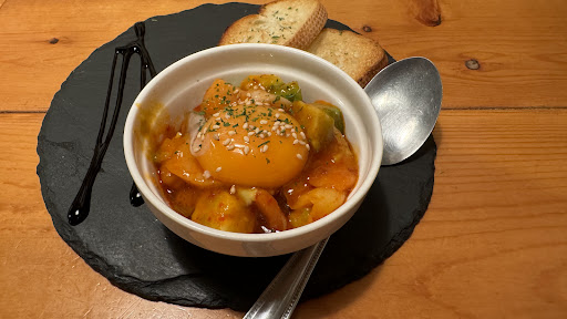 サーモンとアボカドのユッケ?(名前忘れた)は、 付いてきたバゲットが2枚、笑 大抵4枚くらいだと思うが、2枚は少ないと感じた。このお店はバゲット2枚がベースかなと思いきや… 続いて出てきたタコと明太子のアヒージョにはちゃんとバゲット4枚。 味はそれぞれ普通な感じ。おそらくペーストな明太子が一番美味しかったかも。