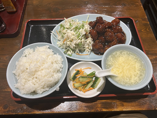 まず定食はオススメっぽいので、黒酢酢豚! そして、揚げスペアリブ🍖を単品追加