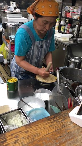 此方のお店で麺類を食べる方のほとんどが「すりばち」を頼まれるので、この光景は一種名物に。
