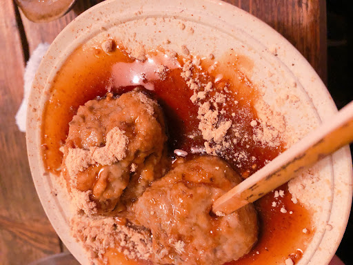 明太とろろ磯部揚げは熱々のまま提供されて タレに付けて口に放り込むと中から出て来た明太がほんのりと絡んで良い感じ。