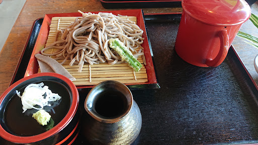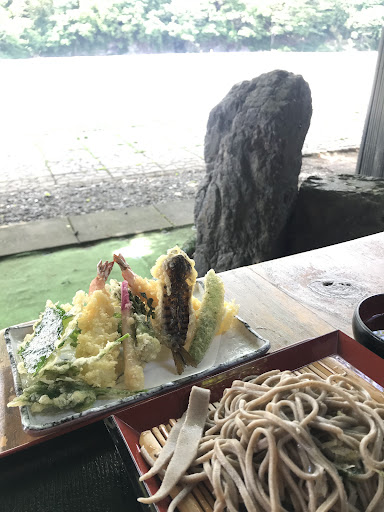 自分はお昼ちょっと前に伺いました。 特に案内とかもなく、空いてる席に座っちゃう感じで席を取りました。 注文はカウンターまで行って、あの席に座ってますって報告して注文。 天ぷら蕎麦と鮎の塩焼きを頼みまして、10分くらい待った程度で料理は来ました。