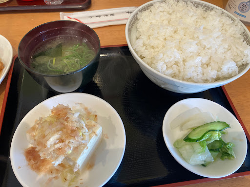 豚ロース甘酢あんかけは優しめの味付けで、厚切りの豚ロースは焼いてからたっぷり餡がかかってますが、かなり柔らかく仕上げられていて美味しい。 付け合わせのミニトマトやレタスも嬉しいポイント。 そして大盛りのご飯は丼にこんもり盛られてボリュームが凄い!+50円でこの盛りなのでかなりコスパ◯。 定食についてきた小鉢の冷奴やお新香、お味噌汁を挟みながらお腹いっぱい完食です。