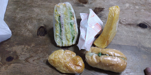 パンの種類はそこまで多くないものの、あんぱん、カレーパン、コッペパン、フレンチトーストなどスタンダードなものから、具がたくさん入ったサンドイッチや、レジ横には炊き込みご飯のおにぎりと蒸しとうもろこしが。