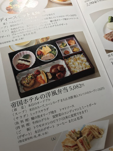 Read moreもう30年くらい利用しています。帝国ホテルに行かずとも買い物ついでに気軽にお料理がいただけ、また、こちらにしかないメニューもあるので、それがまた楽しみです。 通し営業のため、ランチが遅くなってしまってもいつでも食べられるのがとても便利! 落ち着いた雰囲気で、スタッフの方も皆さん気遣いできる丁寧な接客で、安心してお食事することができます。レストラン内は写真撮影を禁止しているもよいところです。 混み合う時は60分待ちというときもありますが、その間買い物していれば携帯に連絡してもらえます。電話での事前予約には対応していません。 以前は今よりメニュー豊富でしたが、今はコロナ禍ということもあり、メニューが減ってしまいました。しかし、シェフのワンプレート、レディースセット、お弁当などお得なメニューが新たに登場しています。 先日のワンプレートは山菜ピラフのハヤシライスでしたが、組み合わせが新鮮でとても美味しかったです。個人的にデザートのチョコレートサンデーは絶品です。初めてオーダーした時、まさか席の前でホットチョコレートソースをかけていただけるとは思わず、パフォーマンス含めて感動しました。 できればエビピラフのアメリケーヌソースが...