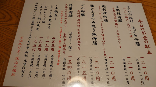 2024.9記 個室が多く雰囲気のいいお店。周りを気にせず会話ができるお店です。 お食事に関しては、期待してはいけません。 ちょっと良い民宿か、年に一度実家に帰った時にのご馳走の感じです。 天麩羅は流石に、家庭料理の域を超えておいしいですが、それ以外は、価格と見合っているかと言われたら疑問。