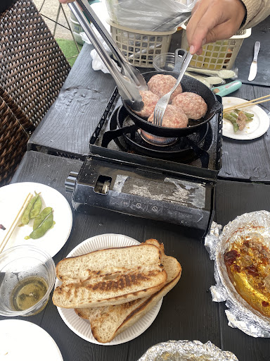 Let me start with the cleanliness, because this is the biggest issue in my opinion. I am by no means a clean freak, but when I say the tables and grilling equipment were literally covered in oil… we had the morning slot (11am), so this is proof that they don’t even clean at the end of the day, let alone between reservations. The tents are torn, taped up, moldy, and soaking wet (it was raining when we went) - we wouldn’t dare step inside them and just used them as a space to store our bags. All of the alcohol besides the on-tap beer was suspiciously dirty - the bottles were half empty (which would’ve been fine in any other well-run BBQ), and the imo shochu was in a bottle that only had a dirty, handwritten label. The menus/recipe cards were equally covered in grease, and there were no vegetables besides edamame in just one dish.