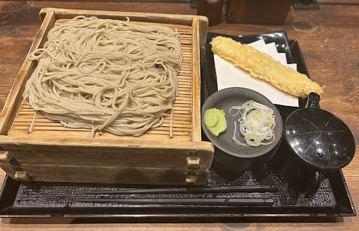 Read more平日の19時に訪問です。 ビックサイトの周辺で食事ができる貴重なお店かと思います。が、時間が遅くなってくると周りが閑散としており、ここでいいのか?とやや不安になります。 場所はビル内のエスカレーターを上がって奥の方にあります。 この日はこの時間帯でお客さんは0で、帰るまでに1名の来客でした。店内が広いので、寂しい感じです。 二八の蕎麦らしく、この値段であれば妙に高い蕎麦屋で食べるより味も食感も満足できるレベルですし、何より量もしっかりあるので食べ応えがあってオススメできます。 気になったのはつゆが多過ぎて、蕎麦湯を入れても味が濃くなり過ぎます。水を飲んだコップにつゆを捨てましたが、半分ぐらいでいいのでは?と思います。 後、イカ天は率直に不味いです。食感はブヨっとしてるし、蕎麦は美味しいだけに勿体無いと思います。 メニュー表の価格と請求額が違うところとレシートで(内)と書いてあるのに別に消費税が請求されます。(内)って普通は内税を意味しませんか?...